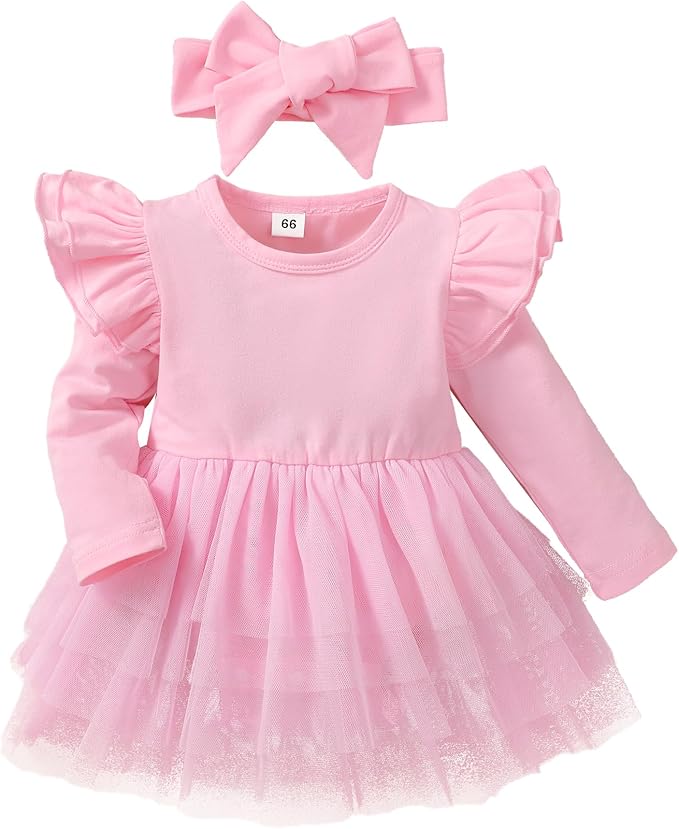 - ❤Design: baby girls romper dress, Butterfly sleeve, crew neck, patchwork ruffle romper and headband, 4-layer mesh patchwork puffy skirt romper, crotch button for easy diaper change. make this newborn baby girl outfits look super adorable. Multiple colors can be selected, Your princess will get tons of compliments in it.