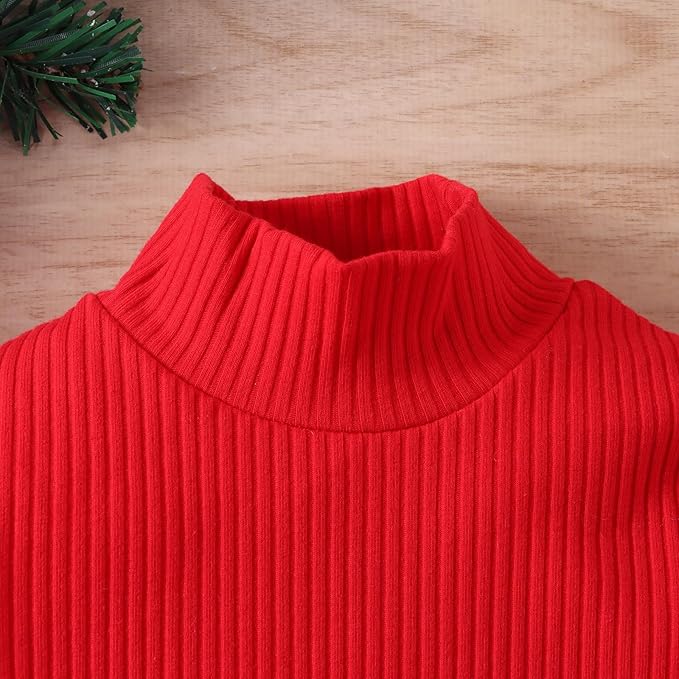 - Appearance: Solid color,long sleeve,ribbed design,turtle neck,t-shirt tops,matching with plaid plead skirt,2pcs dress outfits clothes,make your little one more adorable and fashionable.