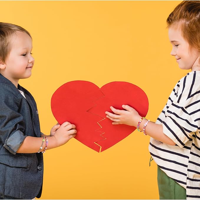 48 Pcs Valentine's Day Kids Friendship Bracelet Set Adjustable Beads Bracelets Cute Friendship Princess Pretend Play Bracelet Stretch Bracelet Preppy Bracelets Set for Girls Women(Heart)