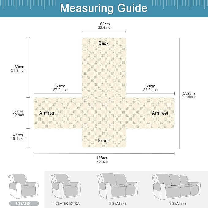 - 【DIMENSIONS GUIDE】Small pet recliner cover fit a chair with a seat width of 23.6 in, see measurement guide in photos. NOTE: Please confirm the size before purchasing. (Due to some lighting reasons, the color of each display will be different, so please refer to the actual color)