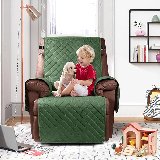 KinCam 100% Waterproof Recliner Chair Cover, Reclining Couch Covers for Pets, Dogs, Recliner Couch Slipcover Furniture Protector with Elastic Straps for Kids(28", Vine Green)