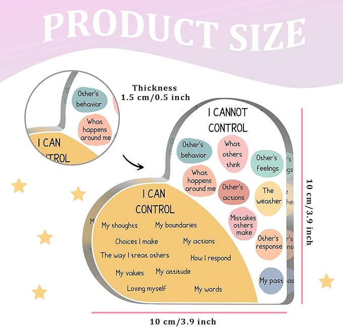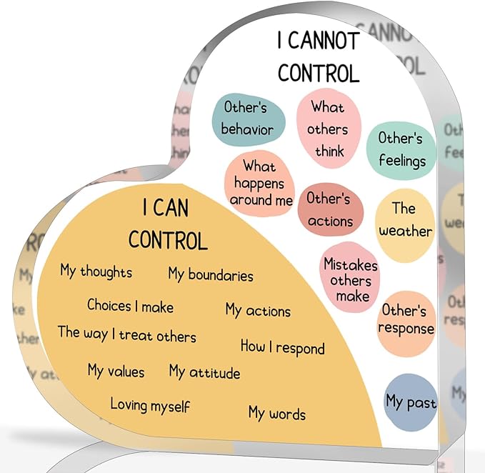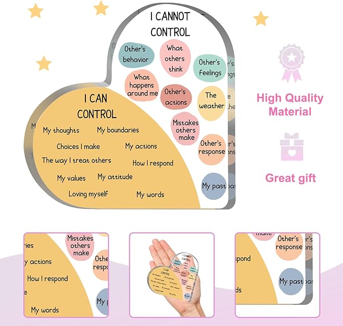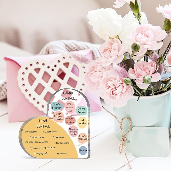 - 【Things I Can Control】This acrylic heart gift print has lots of mental health and subject knowledge content to help you identify your emotions and learn more.Featuring an inspirational saying and rustic simplicity, you can gift it to someone in need near you