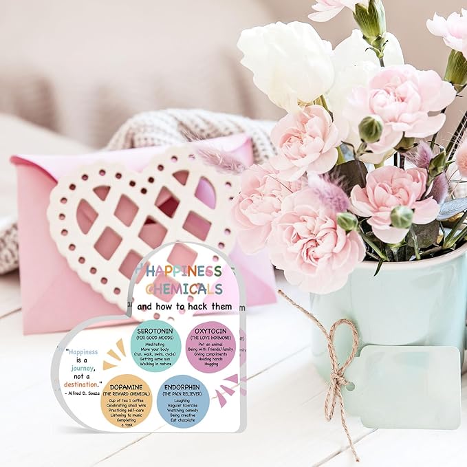 - 【Happiness Chemicals Decor】This acrylic heart gift is printed with many mental health and subject knowledge content, which can help you identify your emotions and learn more. With inspiring language, it is suitable for decorating different spaces such as home, living room, and office. These products have a modern look.