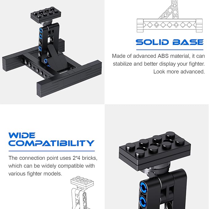 • Multifunctional Stand for Lego Fighter : This is a multifunctional stand with a wide range of compatibility, the connection points are 2x4 bricks, you can infer whether it is compatible with the stand based on the structure of the fighter building kit.