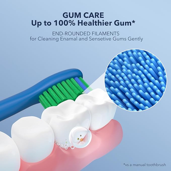 - 【"W" shape design & 4 DuPont Brush Heads】--- More comprehensive and gentle cleaning experience --- [1] Unique "W" shape design to suit teeth surfaces and remove up to 100% more stains from hard-to-reach spots, minimize the risk of damage to gums and tooth enamel. [2] Comes with 4 replacement toothbrush heads. Each brush head lasts 3 months so 4 heads will last for around one year.【NOTICE: Blue indicator bristles fade in color to let you know when it's time to replace the brush head】
