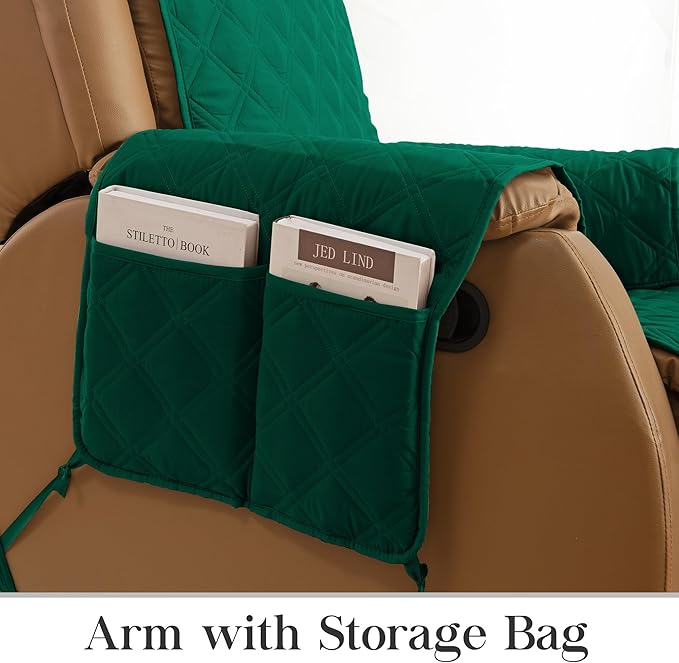 TOMORO Non-Slip Quilted Recliner Cover, 100% Waterproof Recliner Chair Slipcover Furniture Protector with Pockets, Washable Couch Cover with Elastic Straps for Kids and Pets,23 Inch