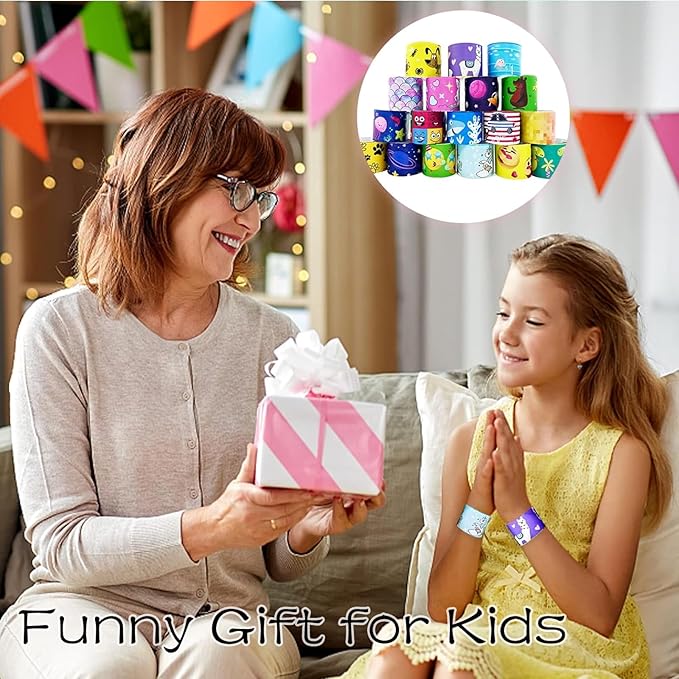 - 【Easy to Wear】 Enjoy the fun of popping from a straight strip to a wrist-hugging snap bracelets kids in an instant. Simply slap kids bracelets on your wrist & they will form a comfortable circle based on the size of your wrist. The bulk party favors for kids little girl bracelets will not break or scratch your skin and it is lightweight and comfortable, allowing you to wear cute slap bracelets for boys for an extended period of time. Kids age 3 and up are recommended.