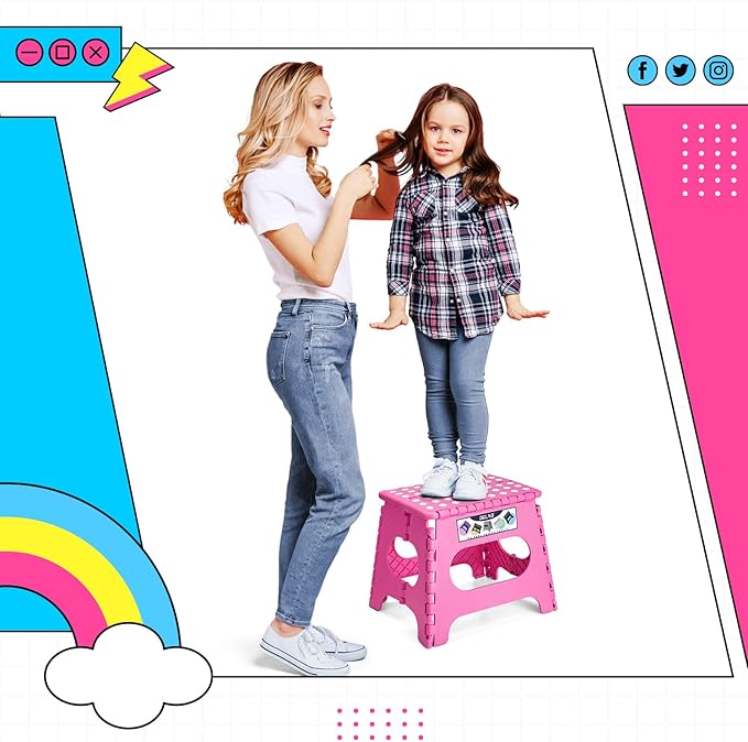 - Sturdy Folding Stool : The internal structural design 11 inch folding step stool in Pink is unique makes the stool extra strong and safe. It can hold up to 300 lbs Max !!! Which is mainly used for kids indoor sitting. Please make sure the step stool is fully opened before use