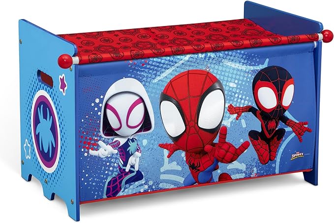 Delta Children - Marvel Spidey and His Amazing Friends 4-Piece Toddler Room-in-a-Box Set – Includes Sleep and Play Toddler Bed, Table, 1 Chair and Toy Box, Blue/Red