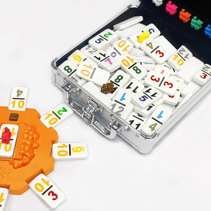 - GREAT FOR TRAVLING: Our double 12 dominoes come neatly packed in a sturdy case making them easy to store away when at home or on the go. The aluminum framed case make it effortless to protect Mexican train dominoes, reducing wear, tear and discoloration, making it a perfect travel game set.