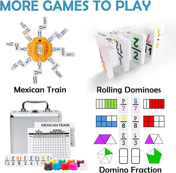 - VARIETY GAMEPLAYING : Besides the classic Mexican Train-a logic game challenges your tactical ability, the set can be used as an educational tool- math puzzles are always an easy but interesting addition& multiplication initiation. Last but not least, you can always go for the best time-killing rolling dominoes and with the 91 tiles you would build a thrilled domino game .