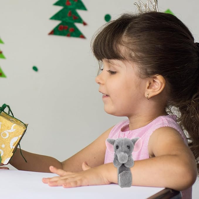 Abaodam Animal Slap Bracelet Elephant Slap Bracelet Plush Stuffed Animal Hugger Snap Wrist Band for Kids Birthday Party Gifts