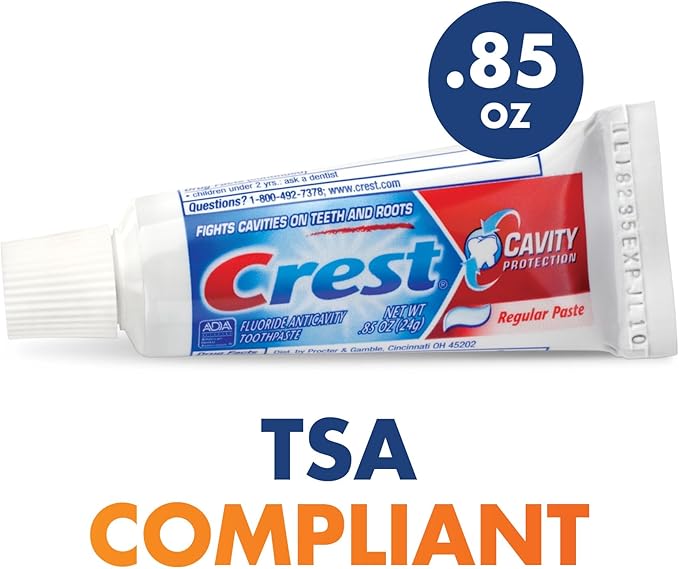- Travel Kit Includes:Y311 SmileGoods toothbrush with an ergonomic non-slip grip, flat-trimmed bristles and a suction cup base. SmileGoods waxed bubble gum floss, 0.85 oz. tube of Crest toothpaste, SmileGoods lip balm mini tube and 3-minute brushing sand timer.