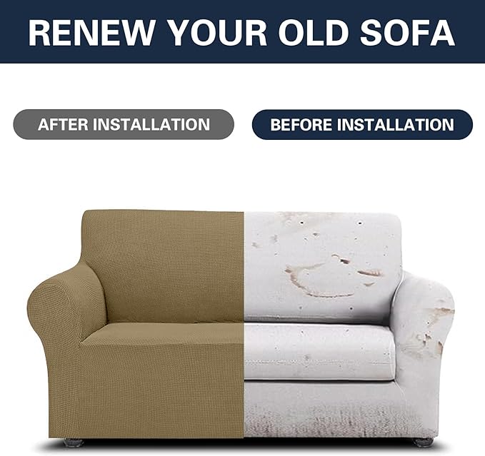 - 【Size】 Our sofa slipcovers are highly flexible and elastic to meet your daily needs, loveseat (medium size) fits sofa’ width(arm-to-arm) 55"-78". In order to bring you a better shopping experience, please refer to the size guide photos and measure your sofa before purchase.
