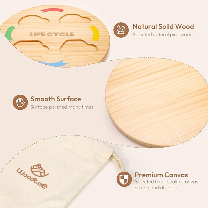 Life Cycle Toys for Kids, 12 Themes Montessori Preschool Science Center Materials, Wooden Learning & Educational Toys for Toddlers, Learning Game Travel Toy Birthday for Boys Girls Age 3-6