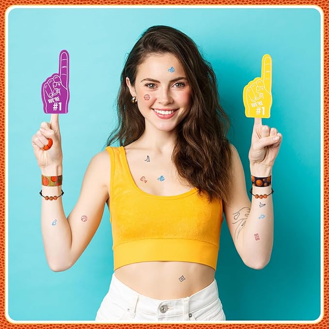 - basketball Party Decorations: basketball charm bracelets and slap bracelets are in line with the theme of basketball; Besides, these mini stress basketball, adding more fun to basketball birthday party celebrations and parties, bringing you and your friend more pleasure; Foam fingers can also bring you more fun when you need to cheer on a race
