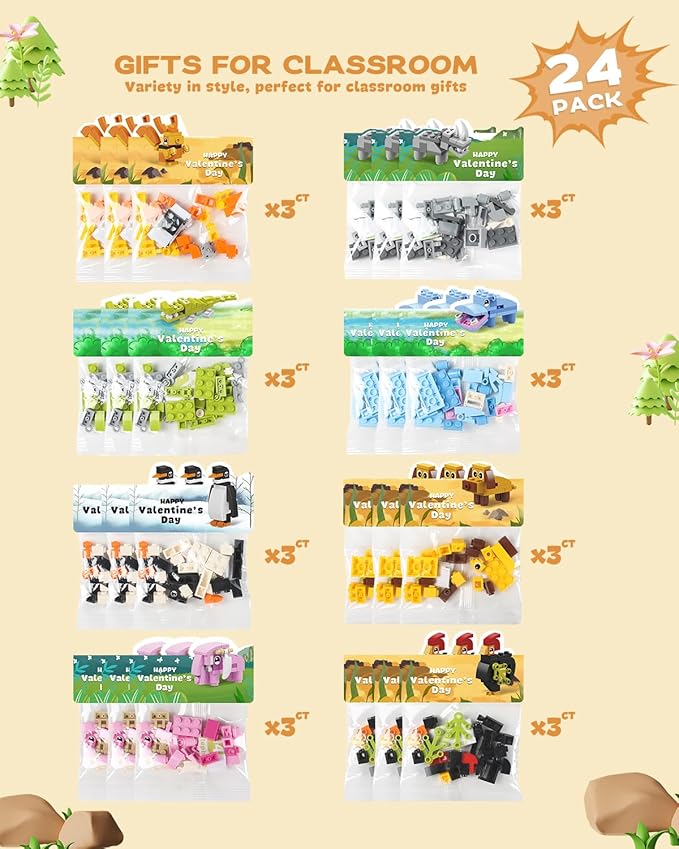 - Surprise kids this Valentine's Day with our unique 24 Pack Animal Toys. Each pack features a different animal and a special Valentine's card, fostering friendship and creativity in a playful manner.