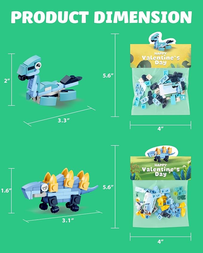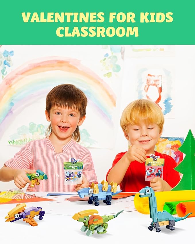- Unique Valentine's Day Dinosaur Building Blocks: Delight your little ones this Valentine's with our 24 pack Dinosaur Building Blocks Set. Each pack features a different dinosaur - from Pterosaurs to T-Rex - ensuring a variety-filled and exciting gift experience. Perfect for kids to exchange in classroom parties and school events.