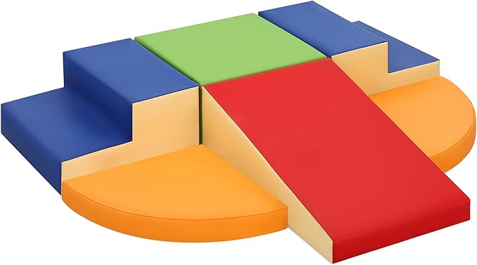 - 6-Piece Set: Baby climbing blocks consists of 2 blue stairs, 2 orange half-moons, 1 green square and 1 red slide. This soft play equipment stimulates your child's imagination to create endless combinations of structures, allowing them to enjoy the fun of the toy as they climb up and down, stacking and swapping four different shapes