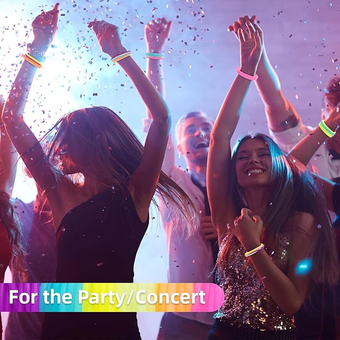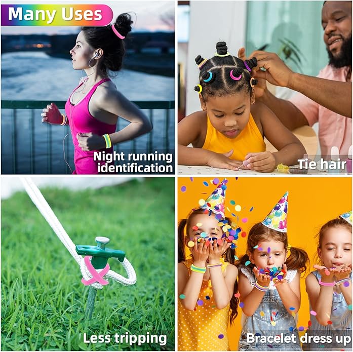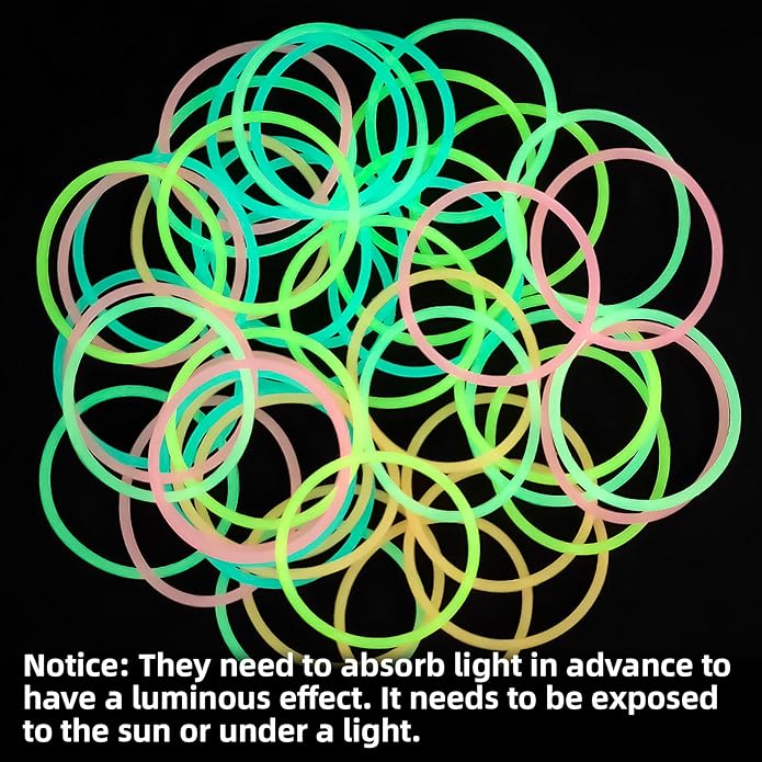 - Glow in the dark:These luminous bracelets can glow slightly in the dark after absorbing light, it can be used when running at night, in clubs or other dark places. Wearing a glow bracelet and you will be that special person in the dark.It can also be used on tent ground pegs. Using it for identification at night to reduce tripping