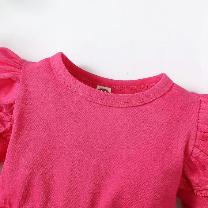 - ❤Material: Cotton Blended for baby romper dress girl, Toddler baby girl ruffle solid color skirt romper, Fabric thick, soft and breathable to wear in spring fall winter days, skin friendly, stretch and comfortable.
