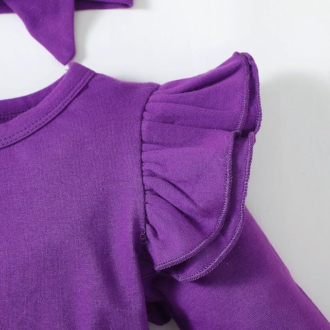 • ❤Material: Cotton Blended for baby romper dress girl, Toddler baby girl ruffle solid color skirt romper, Fabric thick, soft and breathable to wear in spring fall winter days, skin friendly, stretch and comfortable.