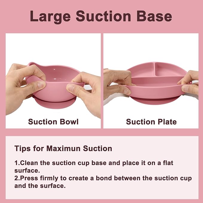 • Strong Suction: Our baby plates and baby bowls features a strong suction base that securely adheres to smooth surfaces, including high chair trays, preventing your baby from pulling it off. The divided plate design holds various foods separately, allowing your baby to learn self-feeding without worrying about making a mess on the floor or dropping plates and bowls. Enjoy every mealtime moment with you and your baby.