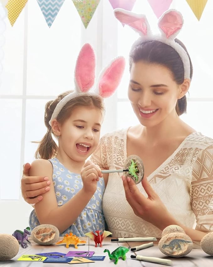 - [12 UNIQUE DINOSAUR EGGS] Looking for Christmas and birthday party gifts for your kids and family? Your children will love using the small brush and chisel to dig with this dinosaur egg digging kit.