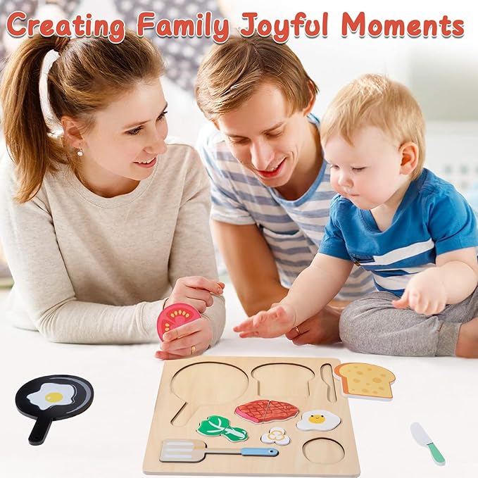 • 🍞【Creating Family Joyful Moments】: The Wooden Puzzles Play Fake Food set is an ideal choice for creating joyful family moments. When parents and children engage together, they share the pleasure of simulating cooking, deepening parent-child relationships, and creating wonderful memories.