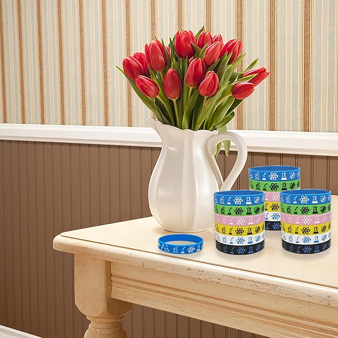 - Science silicones bracelet set: 24 science rubber bracelets in six color styles.