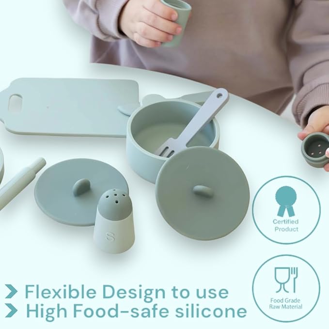 - SAFE FOR KIDS: Our kids play kitchen sets are made of Silicone materials, they are drop-resistant and easy to clean. They do not contain any BPA or harsh materials, ensuring they are safe and sturdy for everyday play.