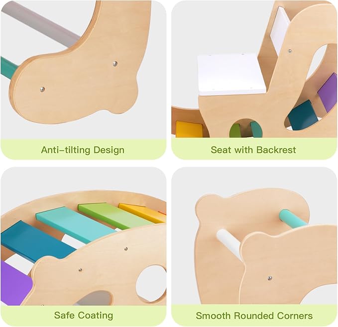 - VERSATILITY - Due to its versatility, toddler wooden rocker allows children to build their own imaginative play scenarios. It can be used as a rocking horse, a shop stand and as a montessori climbing set frame for kids.
