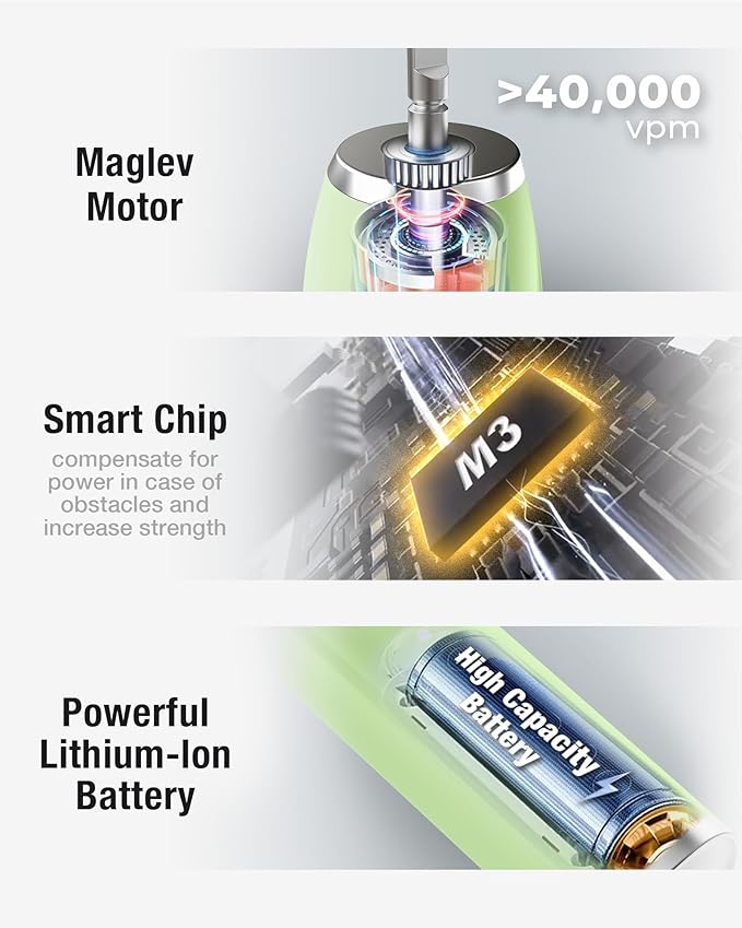 7AM2M Sonic Electric Toothbrush with 6 Brush Heads for Adults&Kids, One Charge for 120 Days, Wireless Fast Charge, 5 Modes, 40000VPM Powered Toothbrush, 2 Minutes Built in Smart Timer (Light Green)