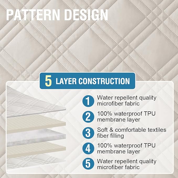 - 100% WATERPROOF: The both sided fabric of the soft filling material adopts surface waterproof technology and 100% waterproof TPU composite technology on the back of the fabric. Stitching and splicing area also uses a fully waterproof widened edging strip. Therefore, the fabric can achieve 100% waterproof effect while retaining double-sided pattern.
