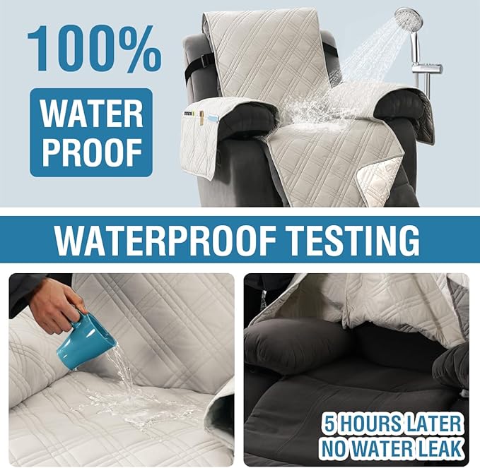 H.VERSAILTEX 100% Waterproof Recliner Slipcovers 1-Piece Lazy Boy Recliner Chair Covers Furniture Protector with Elastic Straps for Pets Kids Sitting Width Up to 23" (Recliner, French Oak/Beige)