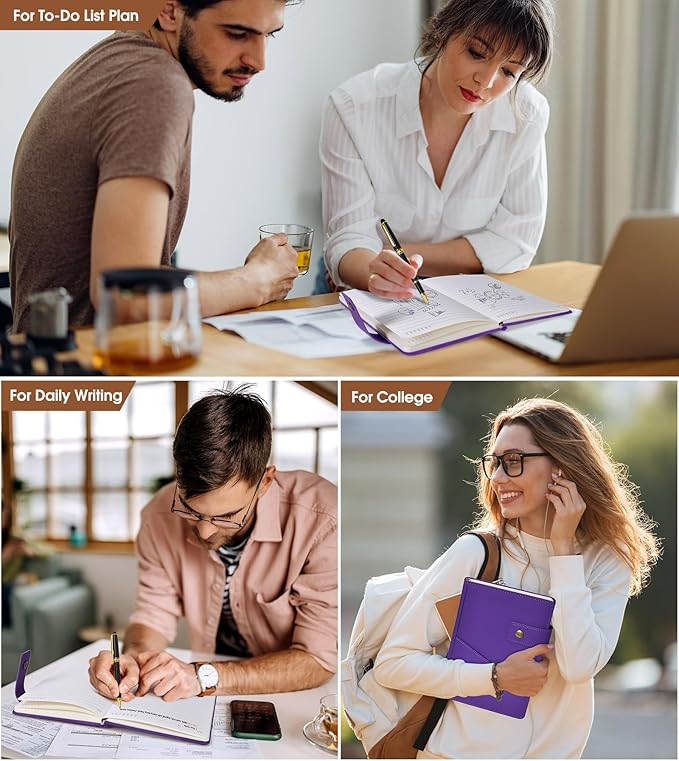 - 【VALUE OF MONEY HARDCOVER JOURNAL SET】: Classic purple ruled notebook, journals are elegant, quality crafted books available at a surprisingly competive price and quality. A huge choice for everyday use, provides plenty of space for notes, lists, musings, and more. And each notebook will give away a luxury pen, this is one of our best journal pens gifts.
