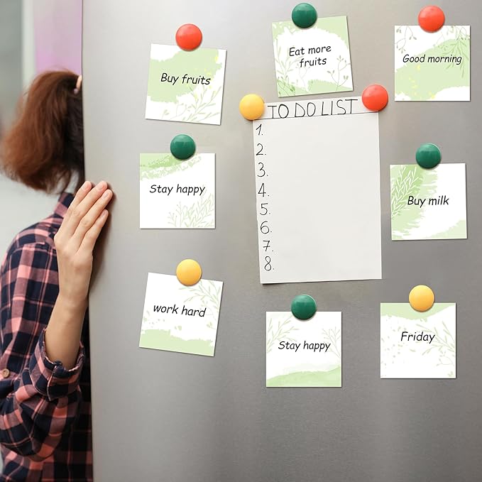 - Wide Use: These sticky notes can be used to write notes, memos, plans, shopping lists, to-do lists, etc. to help remind you to do important or trivial things that are easy to forget; you can stick them to many items with smooth and clean surfaces, such as books, notebooks, computers, whiteboards, windows, walls, doors, refrigerators and so on