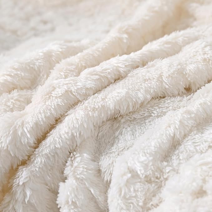 vctops Geometric Jacquard Plush Recliner Chair Cover Soft Fuzzy Fluffy Reclining Chair/Furniture Protector with Elastic Straps for Kids, Pets(Cream,21.7")