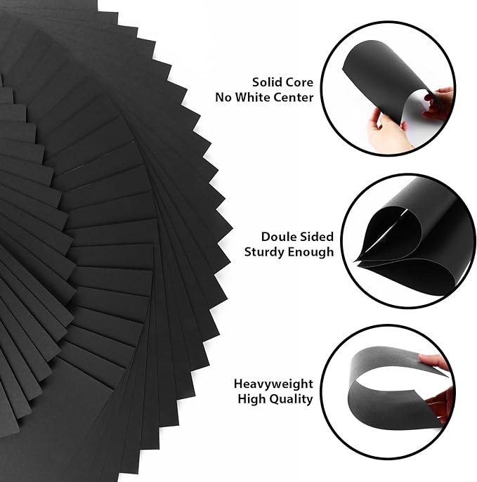 - 【Wide Range of Applications】: Suitable for crafting, scrapbooking, card making and so on. Can be used for greeting cards, invitations, photo albums, handmade paintings. This black cardstockr can help you turn all your imagination into a work of art!
