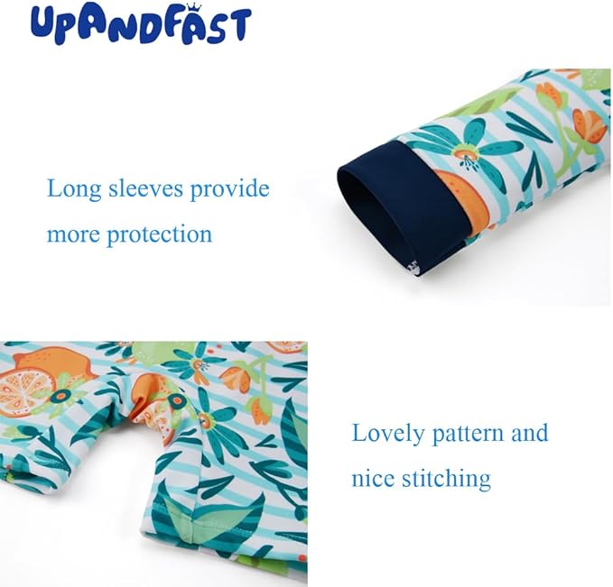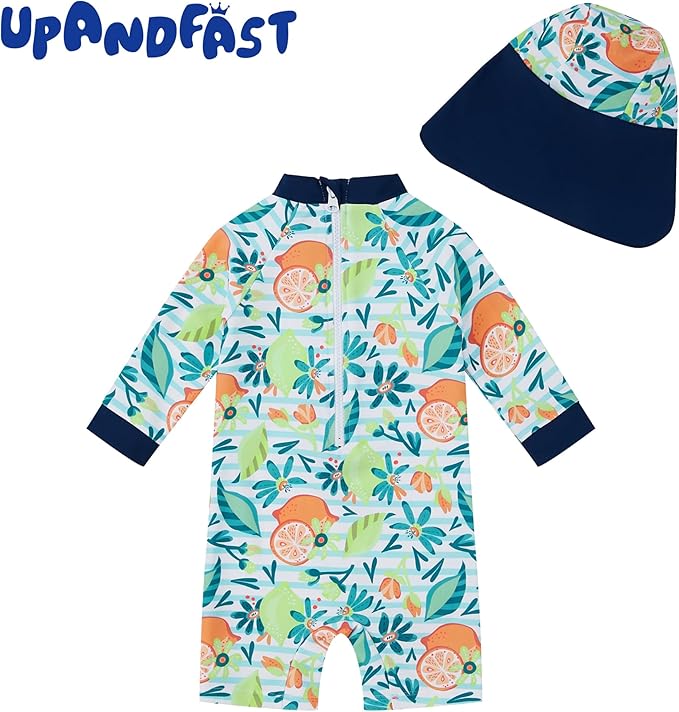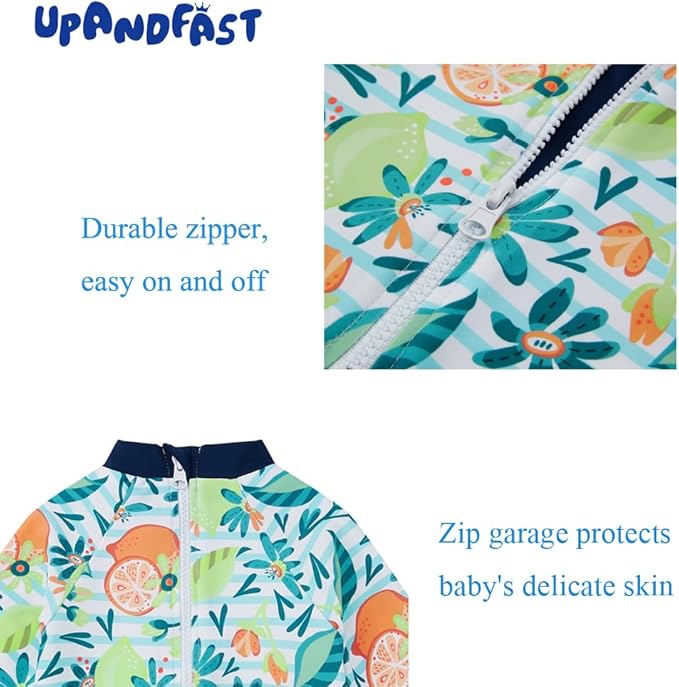 upandfast Baby/Toddler Swimsuit UPF 50+ Sun Protection One Piece Zipper Bathing Suit with Sun Hat Infant Beach Swimwear