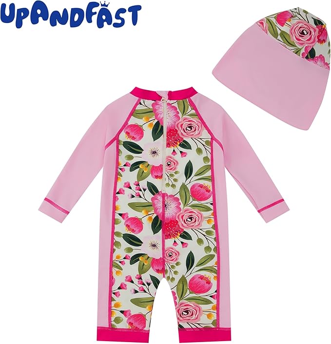upandfast Baby/Toddler Swimsuit UPF 50+ Sun Protection One Piece Zipper Bathing Suit with Sun Hat Infant Beach Swimwear