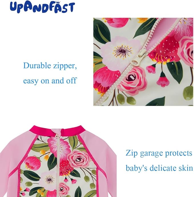 upandfast Baby/Toddler Swimsuit UPF 50+ Sun Protection One Piece Zipper Bathing Suit with Sun Hat Infant Beach Swimwear