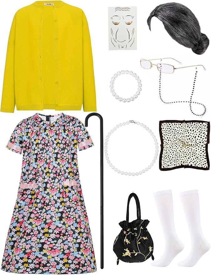 - Comes with High-Value Accessories: We aim to provide you with a one-stop selection of the 100th day of school old lady kids costume. Specially paired with cost-effective accessories for your girl’s granny costume, just for your girl to stand out among peers.