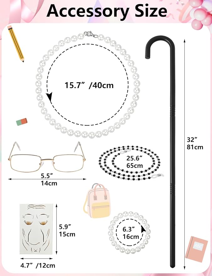 • Versatile Costume: This old lady kids costume is perfect for celebrating the 100th day of school, Halloween, costume parties, or school dramas. This is a great way for your child to embrace their creativity and enjoy the fun.