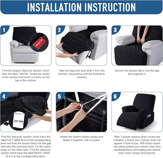 - KID AND PET FRIENDLY: Ideal for homes with children and pets, the reclining couch covers feature bottom elastic and anti-slip buckles to keep them in place, providing an extra layer of protection for your furniture