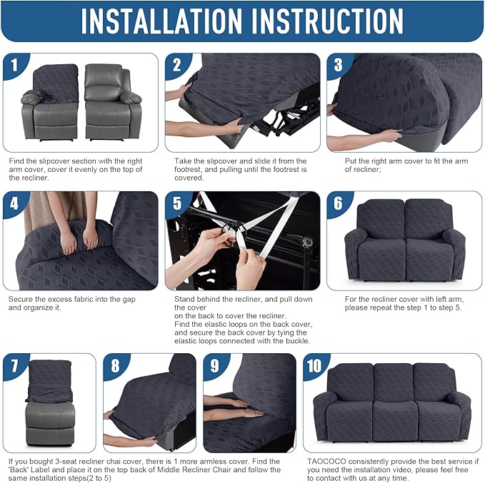 - EASY TO CARE AND WASH: The TAOCOCO reclining sofa slipcovers can be easily washed by hand or machine washed at a temperature below 30 degrees Celsius. Do not bleach. Do not iron