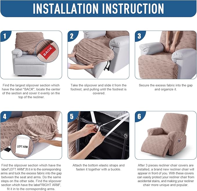 - KID AND PET FRIENDLY: Ideal for homes with children and pets, the reclining couch covers feature bottom elastic and anti-slip buckles to keep them in place, providing an extra layer of protection for your furniture