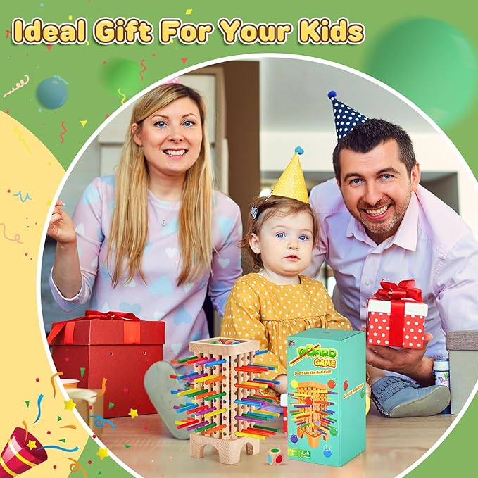 - Easy to Play: In this really simple, fun board game, players first place a net of sticks over the tower and place the wooden balls on top. Players take turns rolling the dice and removing the sticks while trying to prevent the balls from dropping. The player with the fewest dropped balls wins! These simple rules not only develop children's skills, but also make it fun for them to play with friends.