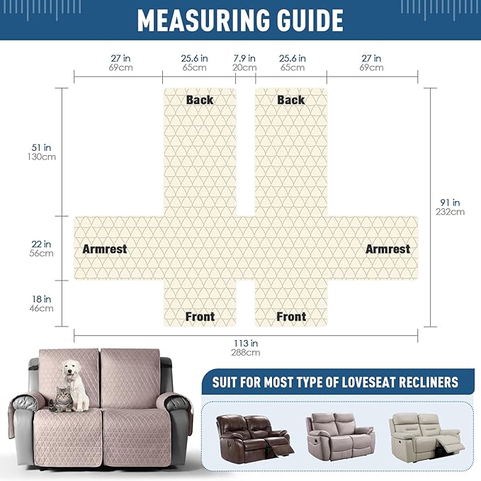 - 【100% Dual Waterproof Protection】waterproof loveseat cover feature premium waterproof fabric and dual waterproof layer technology for unrivaled protection against spills, accidents, and moisture. Keep your recliner dry and stylish, with the ultimate in durability.