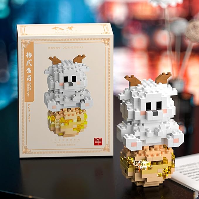 12 Mini Animals Building Blocks Sets Building Block Party Favor for Kids Small Zodiac Animals Pets Horse Dog Monkey Tiger Rabbit Dragon STEM Educational Toys for Boys Girls(Sheep)